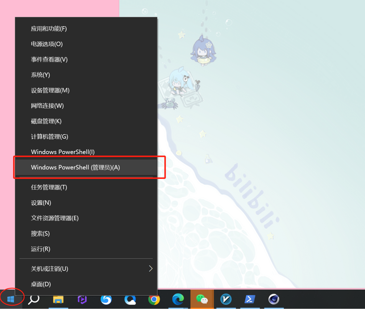 桌面最左下角win图标,右键-选择 PowerShell管理员模式