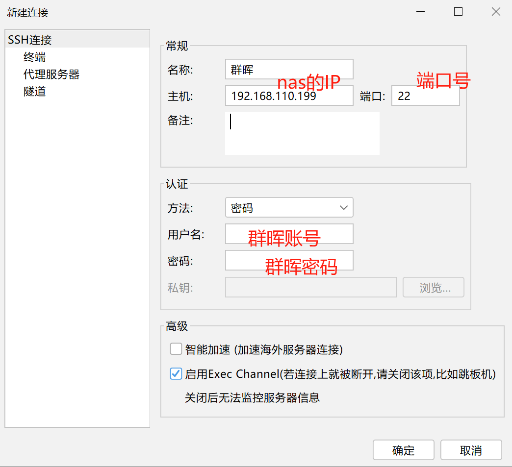 用ssh工具(finalshell、putty、xshell等)连接群晖
