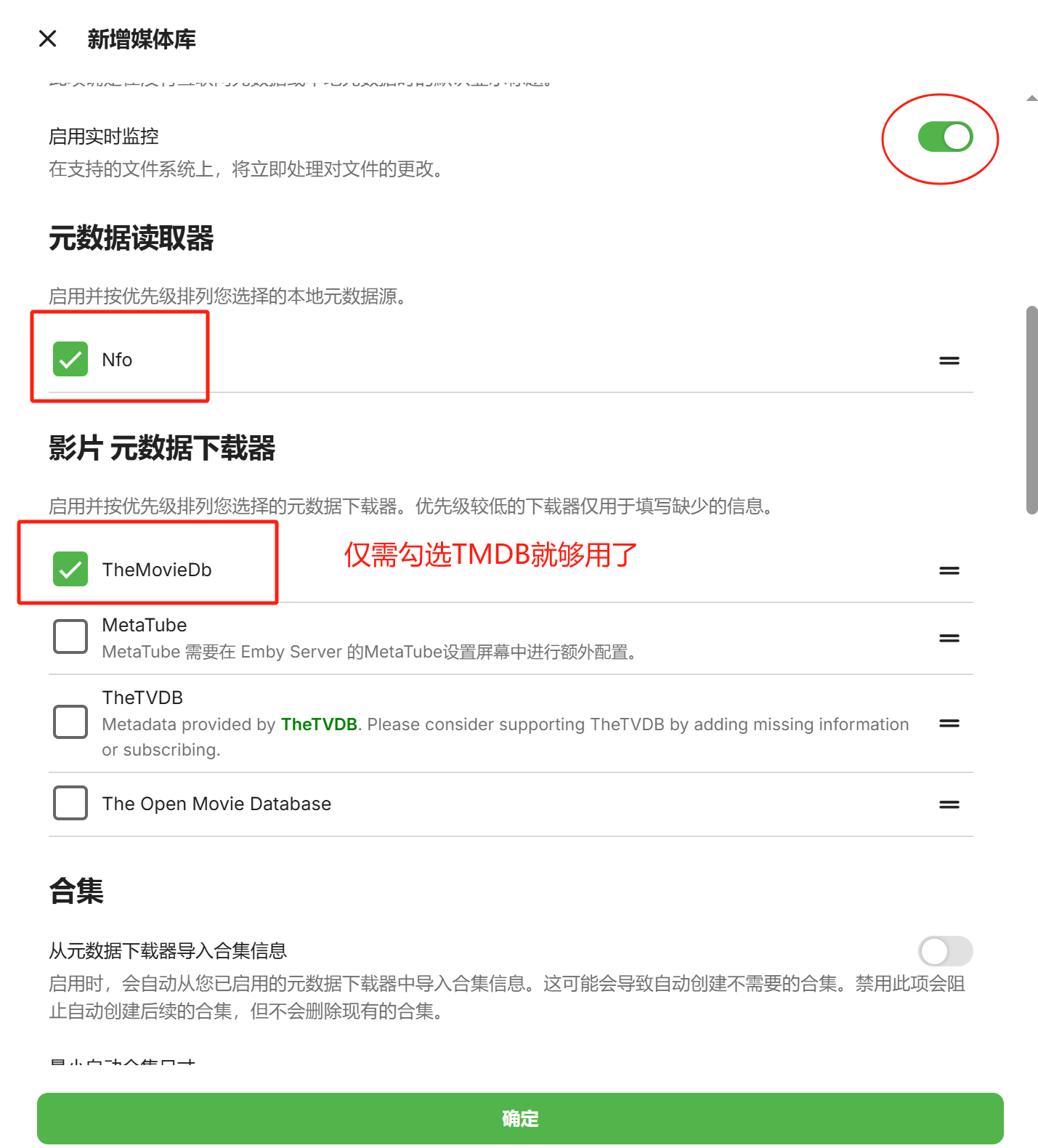 由于我只下载带字幕的片源,或者极少情况下自行搜索下载字幕放到影片同目录下,故媒体库此处的字幕下载器我用不上,不作配置