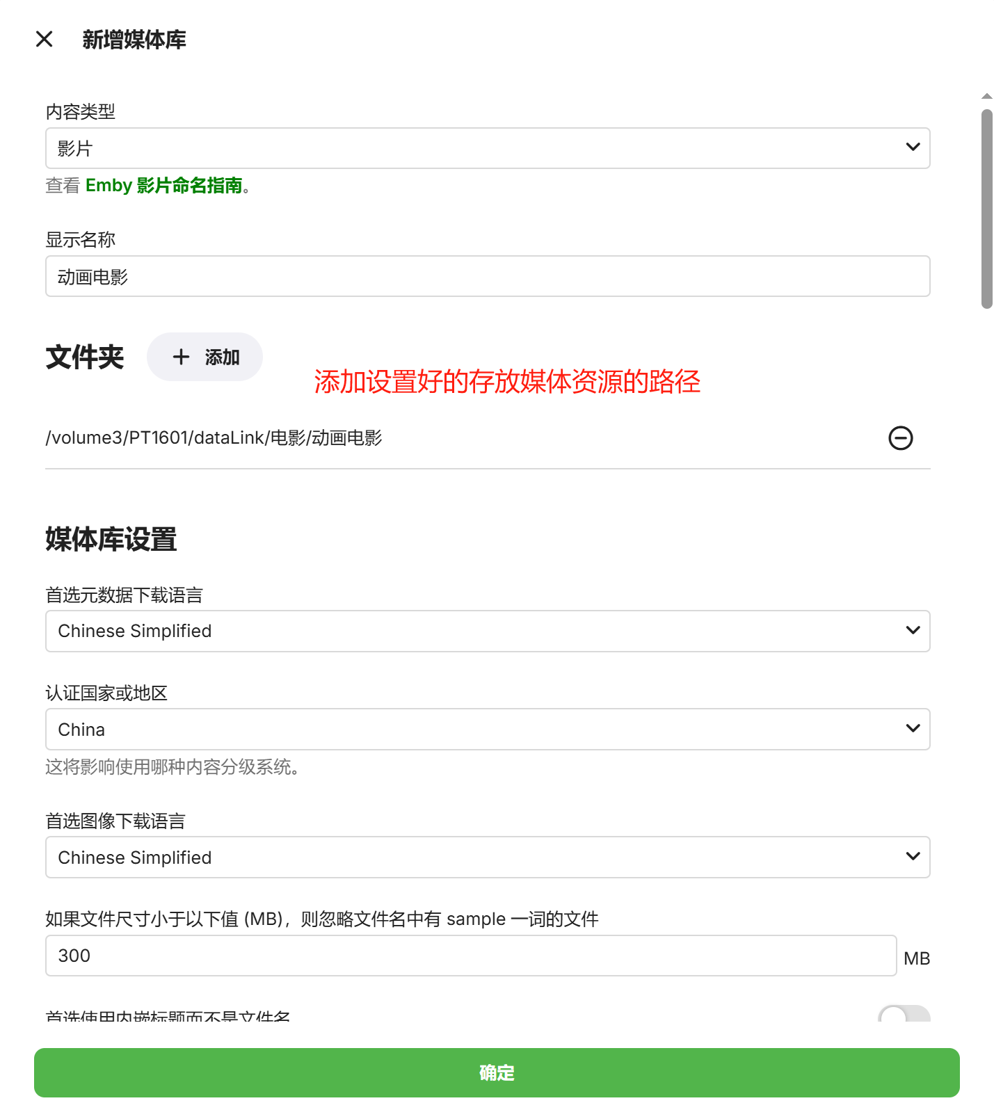 网络模式选host,映射文件夹选媒体资源存放路径,这里先不细说了
