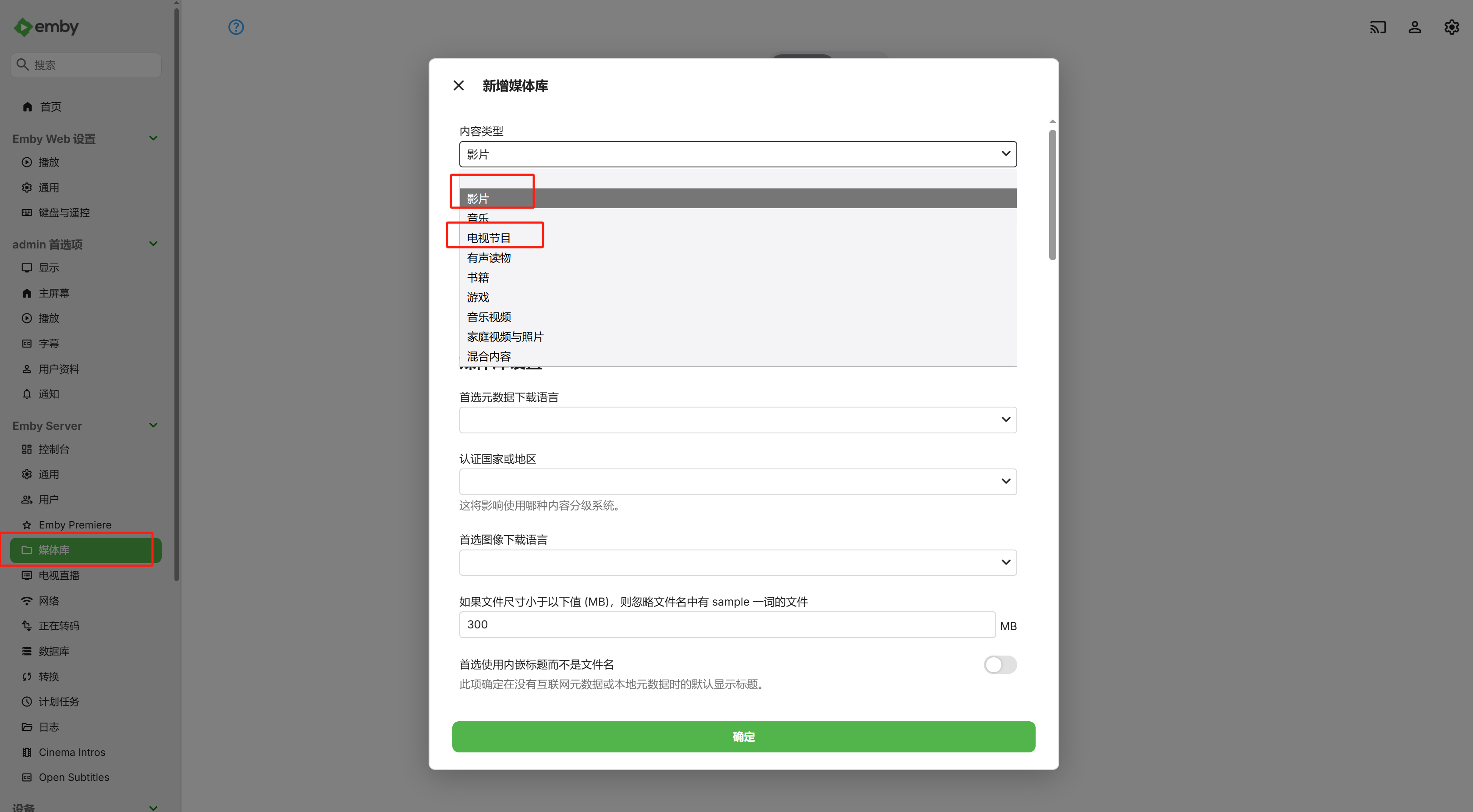 新建子目录/媒体库/dataLink/电影 、 /媒体库/dataLink/剧集,给emby待会扫库使用