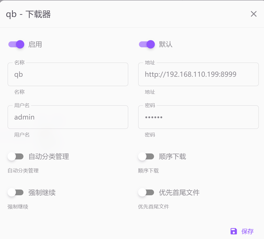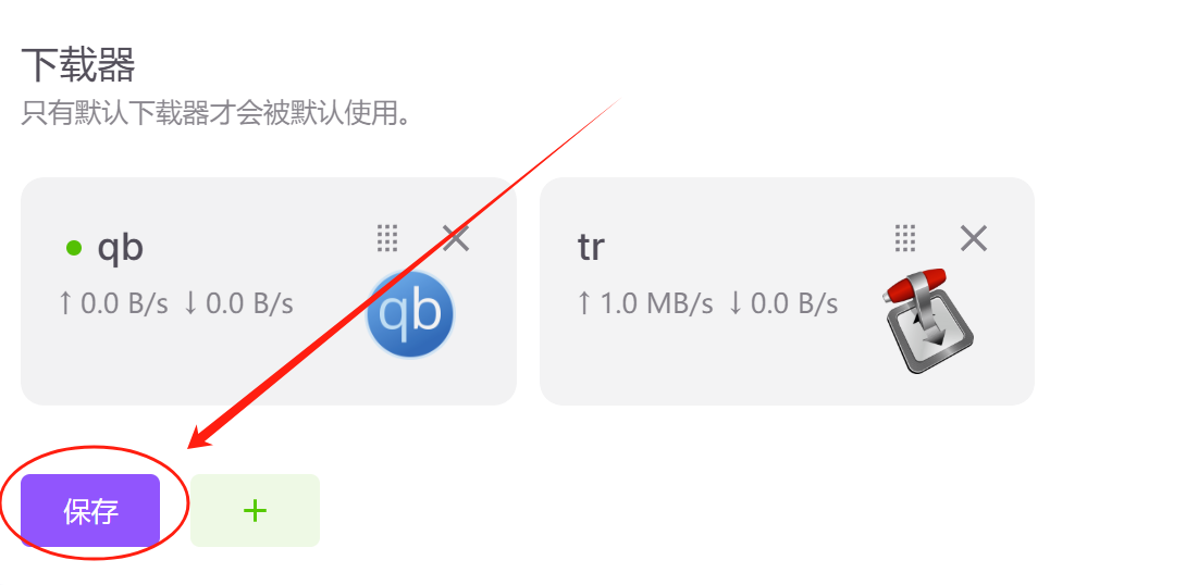 设定>>系统板块>>下载器>>新增QB(下载用)和TR(保种用)