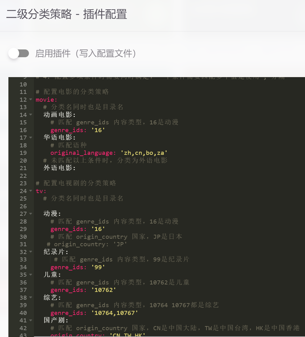 其中自动分类需要在配置文件中设定,我这里使用的是插件-二级分类策略(修改后会自动写入到配置文件中)