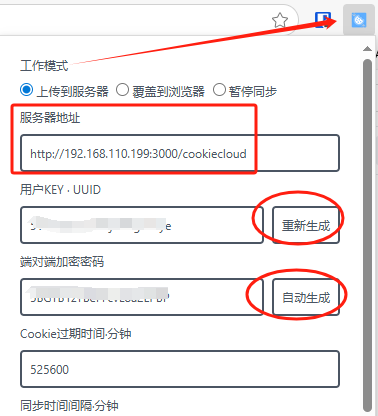 服务器地址填写:http://[nas的IP]:3000/cookiecloud
