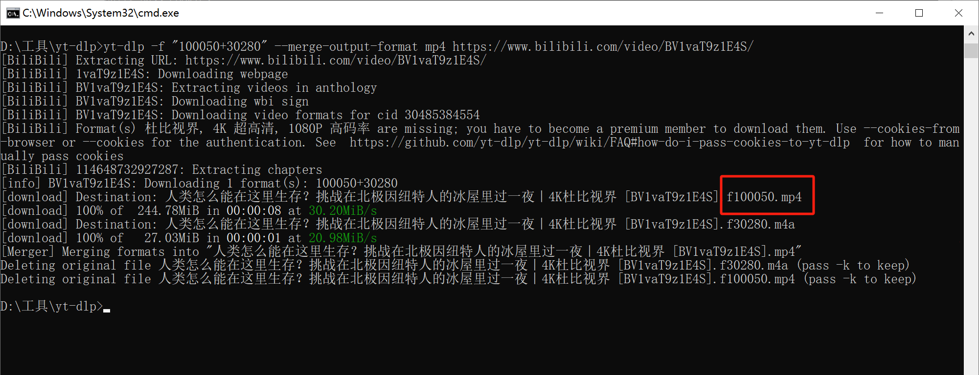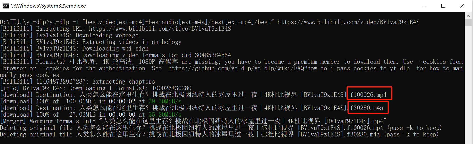 也可以输入yt-dlp -F [url]查看视频内容流,再指定下载并合成