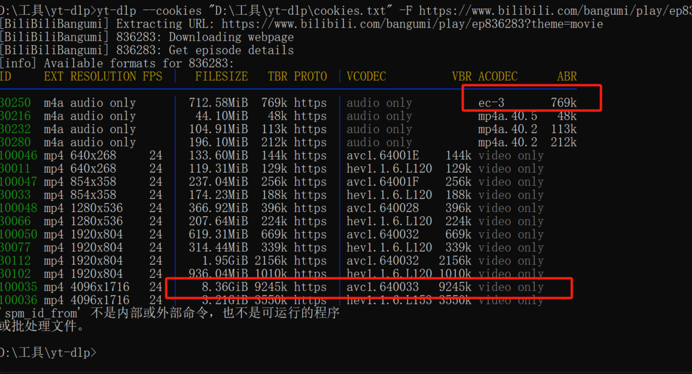 yt-dlp --cookies "D:\工具\yt-dlp\cookies.txt" -F https://www.bilibili.com/video/BV1vaT9z1E4S/